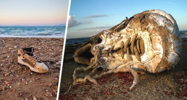 Туристы на пляже пришли в ужас, наткнувшись на ботинок с торчащей в нем ногой