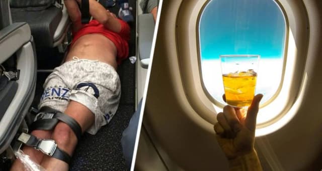 В туалете и на полу в наручниках: дебошир украл в самолёте коньяк и был наказан пассажирами и стюардессами