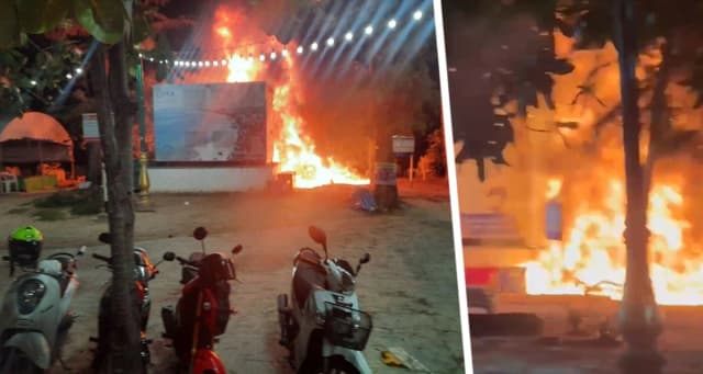Внезапный пожар, вспыхнувший ночью в понедельник, привел к порче десятков пляжных шезлонгов на живописном пляже Патонг на курортном тайском острове Пхукет.