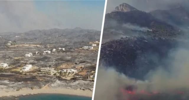 Апокалиптический пейзаж — выжженная земля, разрушенные огнём дома и отели, засыпанные пеплом пляжи и морские волны — такую картину печального конца туризма на знаменитом курорте запечатлел беспилотник, зафиксировавший разрушения, вызванные лесными пожарами на острове Родос. Огонь бушует уже более 10 дней, при этом температура всё еще превышает 40 градусов, что затрудняет борьбу с огнём. Как опасаются в Греции, одним Родосом дело не ограничится.