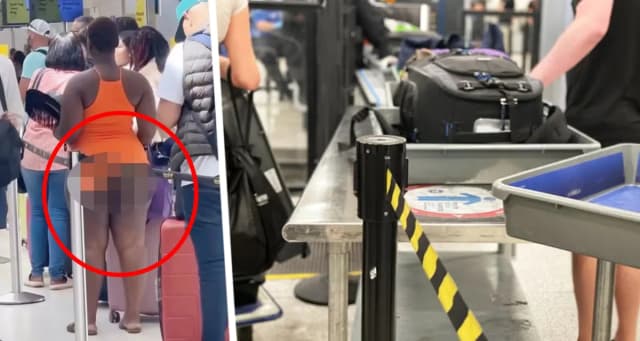 Несмотря на контроль в аэропортах, такие неожиданные ситуации всё равно случаются, оставляя туристов в недоумении и удивлении. Так, недавно очевидцы сняли видео, где афроамериканка невозмутимо стоит в очереди на регистрацию в ультракоротком оранжевом платье, выставив напоказ свои обнажённые ягодицы.