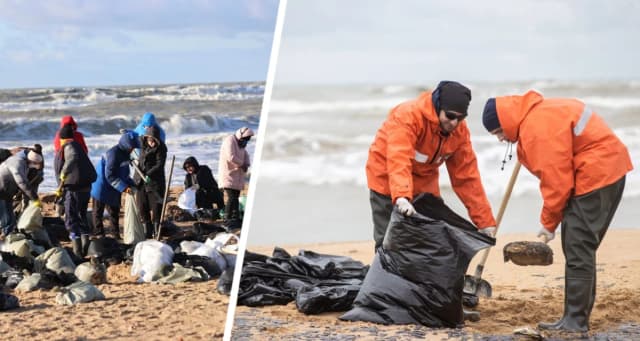 «В районе экологической катастрофы работают более 250 сотрудников МЧС, но людей явно не хватает, поэтому местные жители сами вышли очищать пляжи», - добавляет с мест ТК База. Волонтёры уверяют, что уборка идёт с трудом: нефтепродукты быстро разъедают пластик мешков, да и порой волны уносят их обратно. «В магазинах раскупили почти все лопаты. Волонтёры просят присоединяться неравнодушных», - добавляет канал.