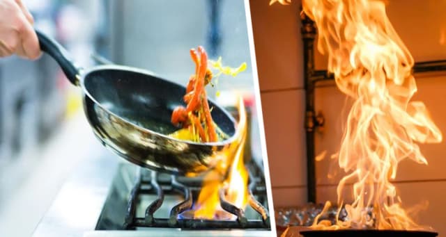 Поскольку такая ситуация, увы, не так редко случается в том числе и на домашних кухнях, приведём и инструктаж от российского МЧС — как избежать подобных ситуаций и что делать, если ЧП всё-таки произошло. Во-первых, в чём причина ситуации? Дело в том, что масло, оставленное без присмотра, загореться может очень легко — когда масло перегревается, оно начинает кипеть, потом дымиться, а потом вспыхивает. Для большинства растительных масел критичная температура — 232 градуса; животные жиры, включая сало и гусиный жир, могут преподнести «сюрприз» уже от 191 градуса.