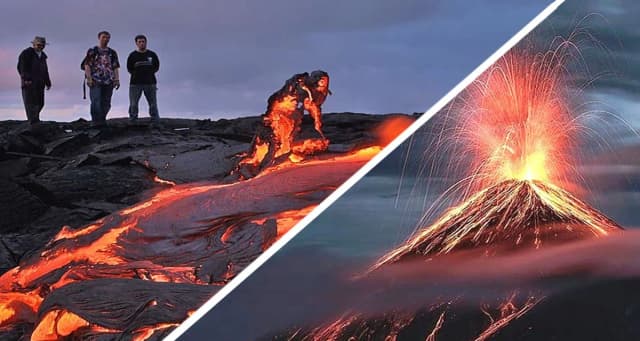 Вскоре после этого на видеозаписях появилась раскаленная лава, стекающая по склону вулкана, и поднимающиеся в воздух клубы дыма.