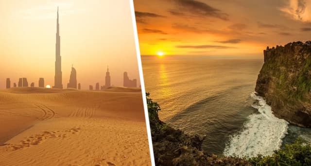 Перечислим также другие места с самыми потрясающими закатами, куда наши туристы могут долететь без проблем, а часто и без виз. На 11 месте оказалось Улувату на Бали, в Индонезии, а сразу за ним — вид на закат с Бурдж-Халифа в Дубае, ОАЭ. Добравшимся в Европу советуют посмотреть на закат из садов Трокадеро в Париже или около Дуомо в Милане. Замыкает список первых 15 мест дубайская пустыня.