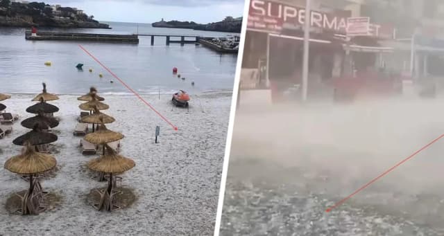 Аномальная погода обрушилась на Средиземноморье и превратила знаменитые пляжи популярной курортной Майорки в ледяные пустыни — и это в мае, когда туристы обычно уже активно едут на море в поисках тепла и солнца. Внезапный град в форме крупных льдин накрыл песок и улицы популярного испанского острова, мгновенно превратив золотистые пляжи в белоснежные поля.