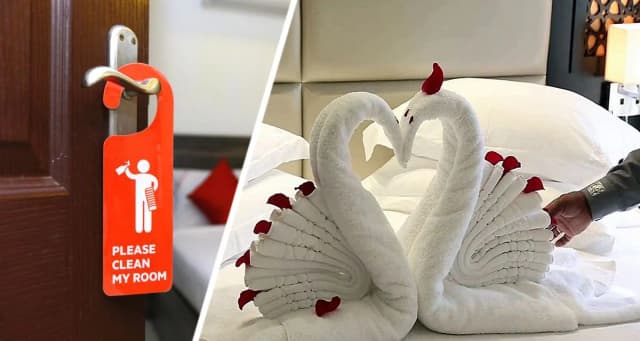 Бывшие работники службы уборки подтверждают: им нравится, когда гости помогают. Это экономит время и силы. Они также рекомендуют оставлять скомканное белье на уровне пояса, а не на полу, так как это облегчает процесс и снижает нагрузку на спину.