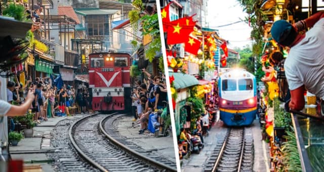 Туристы вынуждены убирать руки и ноги, когда мимо проносится поезд в Ханое, отступая в привокзальные кафе, которые смогли принести прибыльный бизнес в бывшие трущобы. Правительство не раз пыталось закрыть этот квартал вьетнамской столицы из соображений безопасности, но это кажется маловероятным, поскольку социальные сети привлекают в этот район всё больше посетителей.