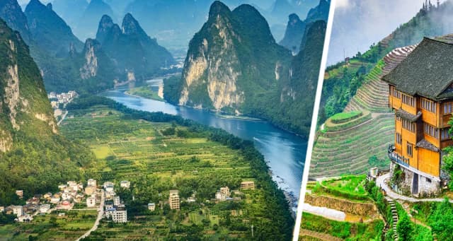 - Город Яншо: Расположенный неподалеку от Гуйлиня, Яншо является популярным местом среди туристов, благодаря своей живописной природе и активным развлечениям, таким как сплавы по реке и скалолазание.