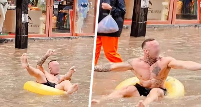 Погода на Пхукете продолжает преподносить неприятные сюрпризы. А туристы в ожидании хорошей погоды развлекаются как могут - и становятся героями дня (и скандала) в тайских соцсетях. Дожди и наводнения испытывают инфраструктуру курорта на прочность - и на самом-то деле Пхукет столкнулся с серьезными проблемами, вызванными сильными ливнями и наводнениями, особенно в популярных туристических районах. Но инцидент с иностранцем, устроившим заплыв на надувном круге по затопленной Бангла-роуд, стал вирусным, вызвав неоднозначную реакцию в сети.