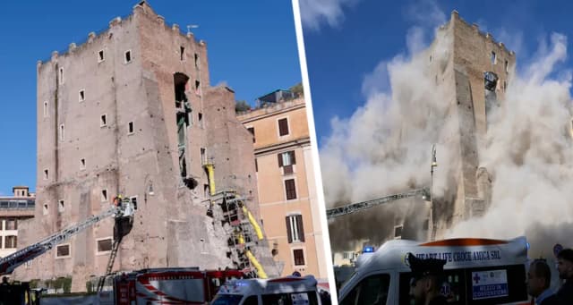 Рим в руинах: Средневековая башня Конти дважды обрушилась в центре города, собрав вокруг себя туристов
